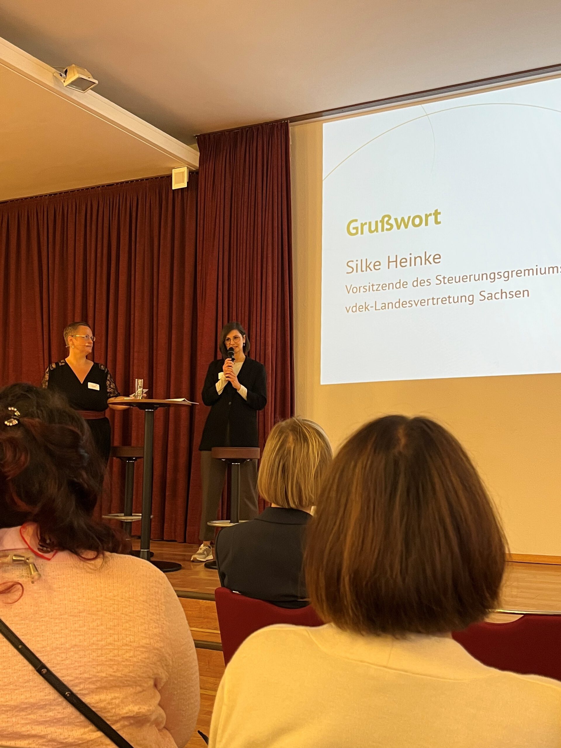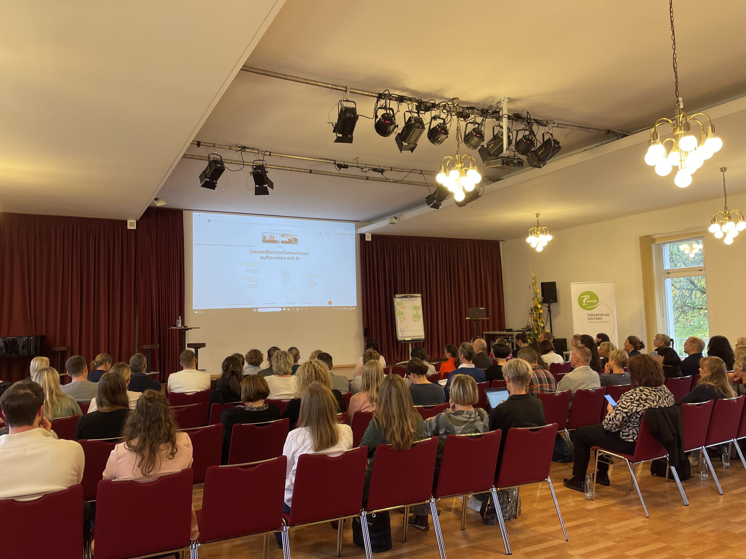 Nach den Grußworten von Ines Lüpfert (2. Beigeordnete, Landratsamt Landkreis Leipzig), Petra Köpping (Sächsische Staatsministerin für Soziales, Gesundheit und Gesellschaftlichen Zusammenhalt, per Videobotschaft) sowie von Anke Weber, welche stellvertretend für Silke Heinke (Vorsitzende des Steuerungsgremiums P. SACHSEN, vdek-Landesvertretung Sachsen) sprach, eröffnete Prof. Dr. Katharina Rathmann (Hochschule Fulda) die Veranstaltung mit ihrer Keynote. Da sie aus persönlichen Gründen leider nicht vor Ort sein konnte, wurde ihre aufgezeichnete Präsentation eingeblendet, die einen fundierten Überblick über den Stand der Forschung zur Gesundheitskompetenz bot und zentrale Ansatzpunkte zur Förderung in verschiedenen Lebenswelten aufzeigte.