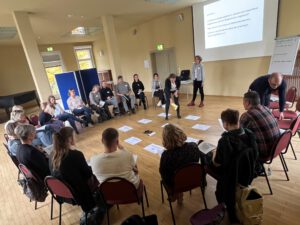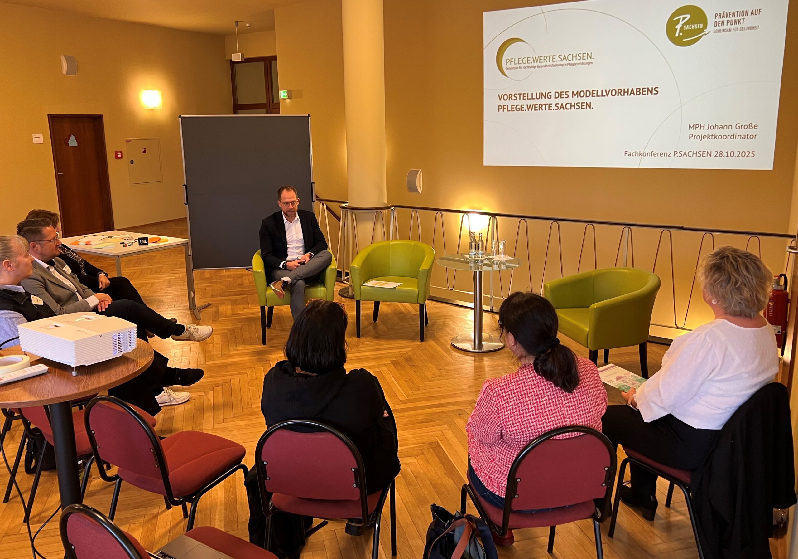 Das Modellvorhaben verfolgt das Ziel, die Lebens- und Arbeitsbedingungen in stationären Pflegeeinrichtungen nachhaltig zu verbessern – für Bewohnerinnen und Bewohner ebenso wie für Mitarbeitende. Im Workshop wurde deutlich, dass gute Pflege mehr braucht als Fachwissen: Es braucht Strukturen, die Gesundheit, Wertschätzung und Miteinander fördern. Anhand konkreter Beispiele wurde gezeigt, wie der Aufbau organisationaler Gesundheitskompetenz dazu beitragen kann, langfristige Veränderungen anzustoßen und im Alltag zu verankern. Durch die kleine Gruppengröße entstand eine eine intensive und offene Diskussion. Die Teilnehmenden nutzten die Gelegenheit, eigene Erfahrungen einzubringen, Fragen zur praktischen Umsetzung zu stellen und Gemeinsamkeiten in den Herausforderungen ihrer Einrichtungen zu erkennen. Der Workshop erwies sich zudem als wichtige Plattform zur Vernetzung: Es konnten neue Kontakte vermittelt und Interessenten für das Projekt gewonnen werden.