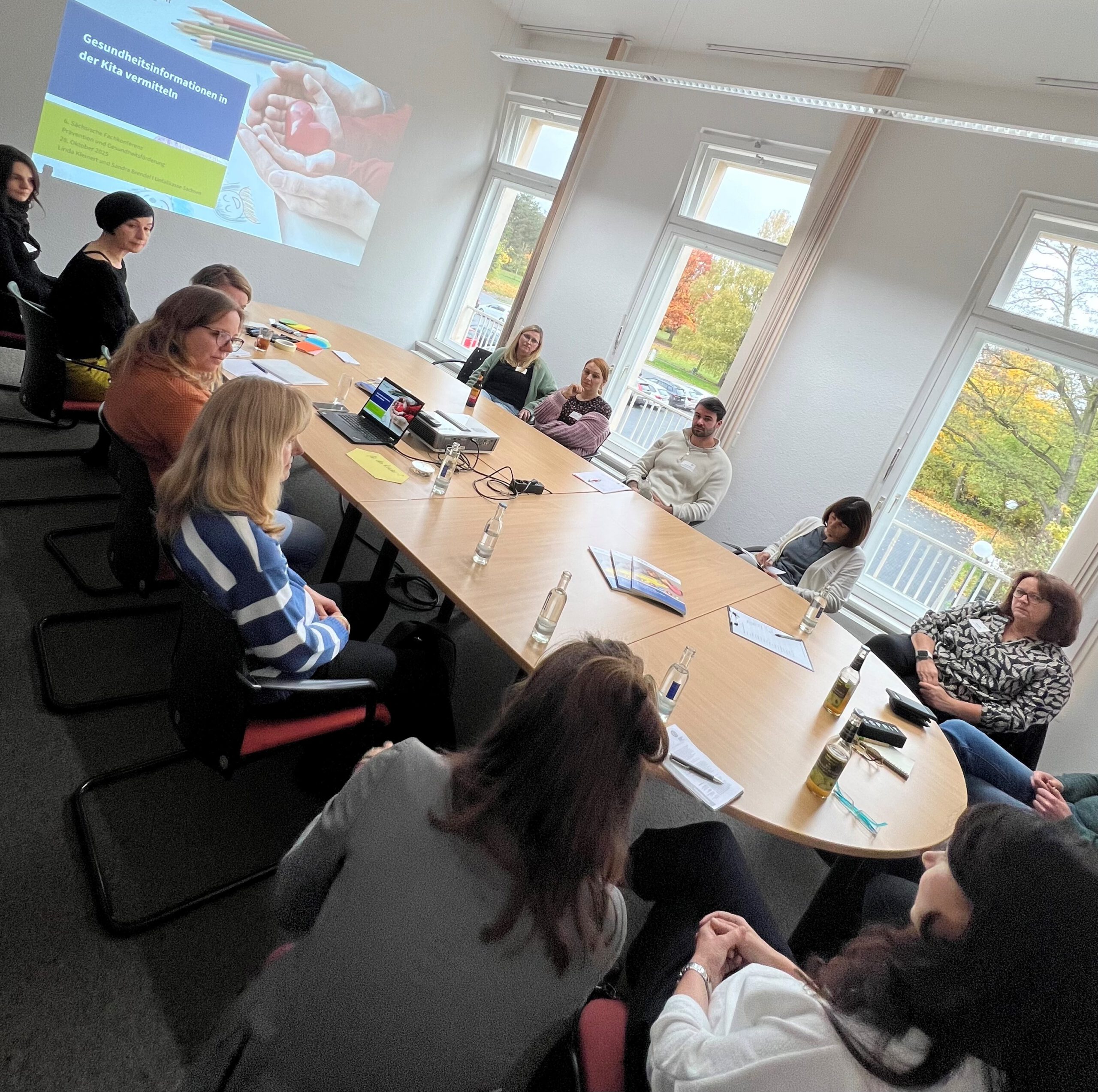 Gesundheitskompetenz in der Kita wächst, wenn Fachkräfte und Familien Gesundheitsthemen gemeinsam verstehen, vorleben und in den Alltag integrieren. Dafür braucht es Raum für Austausch, gegenseitiges Verständnis und Verantwortungsbewusstsein bei allen Bezugspersonen. Damit Gesundheit von Anfang an ein gemeinsamer Kernwert wird, sollte zudem in anderen Lebenswelten ein Bewusstsein für die Besonderheiten des Kita-Settings geschaffen werden. Wichtig ist außerdem eine gute Vernetzung – zum Beispiel mit betrieblichen Lebenswelten –, um die Gesundheit der Beschäftigten in Kitas zu stärken und zu unterstützen. Im Workshop tauschten sich die Teilnehmenden intensiv zu Bedarfen, bestehenden Initiativen und Programmen im Zielbereich „Gesund aufwachsen“ aus und diskutierten, wie diese Angebote erfolgreich in der Praxis umgesetzt werden können.