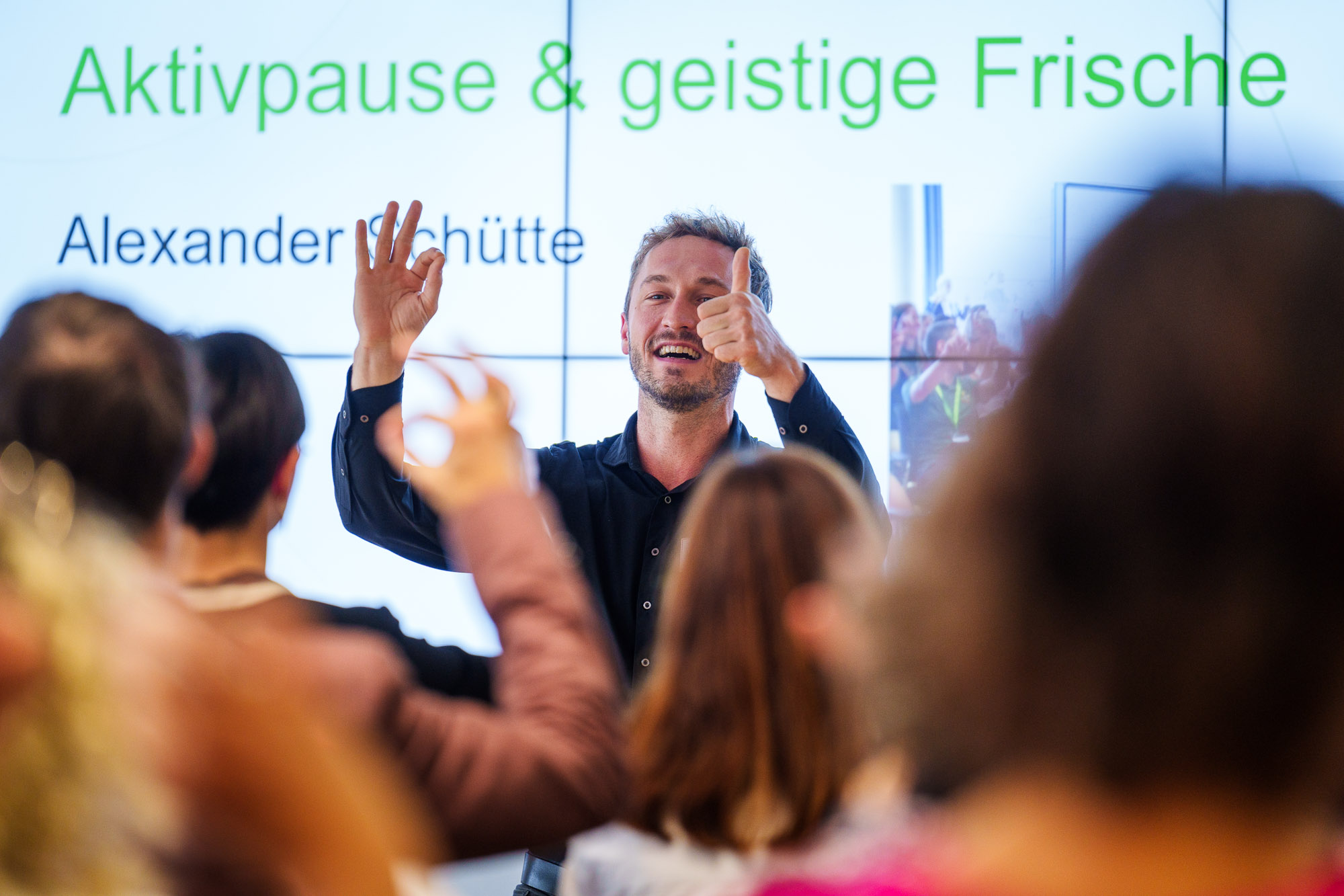 Zum Einstieg wies Tobias Benzin (HFA BGMplus), der auch als Moderator und Inputgeber durch den Tag führte, auf den schnellen Wandel in der Arbeitswelt hin, der gerade auch für kleine und mittlere Unternehmen durch Fachkräftemangel und geänderte Wertvorstellungen gekennzeichnet sein wird. Mitarbeiter*innengewinnung und Fachkräftebindung werden nur gelingen, wenn Führungskräfte als Vorbild wirken, Werte- und Kulturwandel anerkennen und gesunde Führung als zukunftsweisenden Weg nutzen.